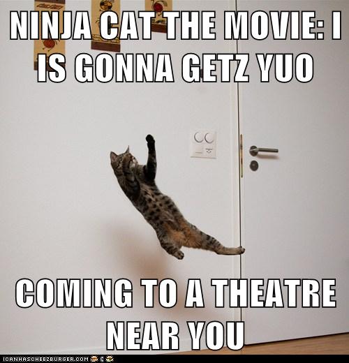 Ninja Cat The Movie I Is Gonna Getz Yuo Coming To A Theatre Near You Lolcats Lol Cat Memes Funny Cats Funny Cat Pictures With Words On Cat House Singapore Cute Unique Kitten Names